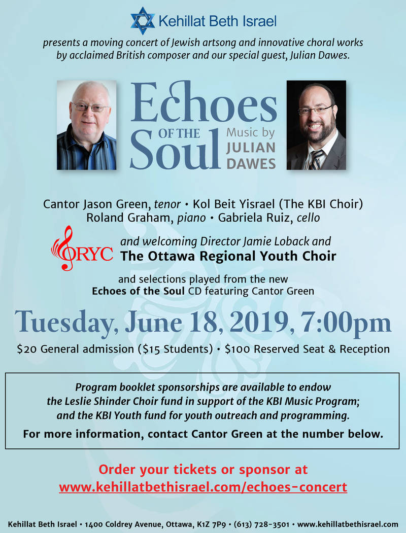 Additional information, tickets or sponsorships are available through their web site – https://kehillatbethisrael.shulcloud.com/form/echoes-concert.html