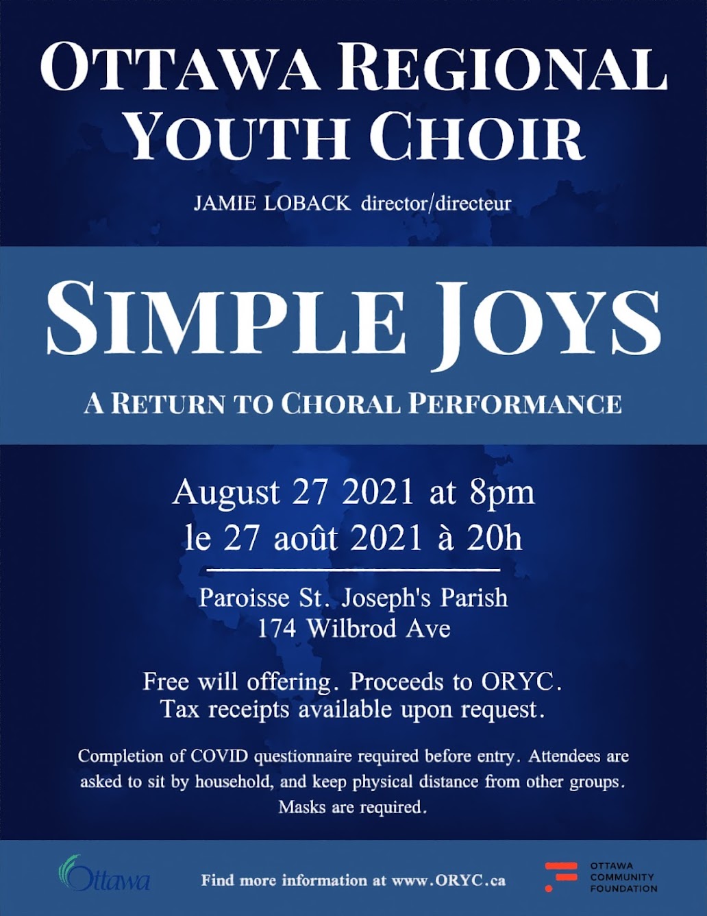 Simple Joys: A Return to Choral Performance. Aug 27, 2021 8PM. Compliance of COVID Questionnaire and protocol mandatory.
